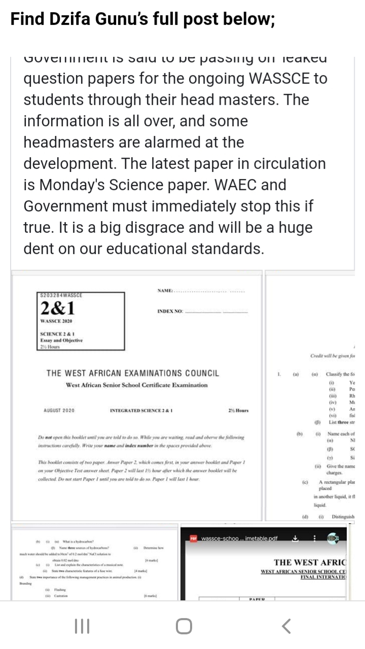 Prospective WASSCE students are yet to write their Science papers on Monday, August 3, 2020, but Mr Gunu says the question papers have already been given to students and are being widely circulated.